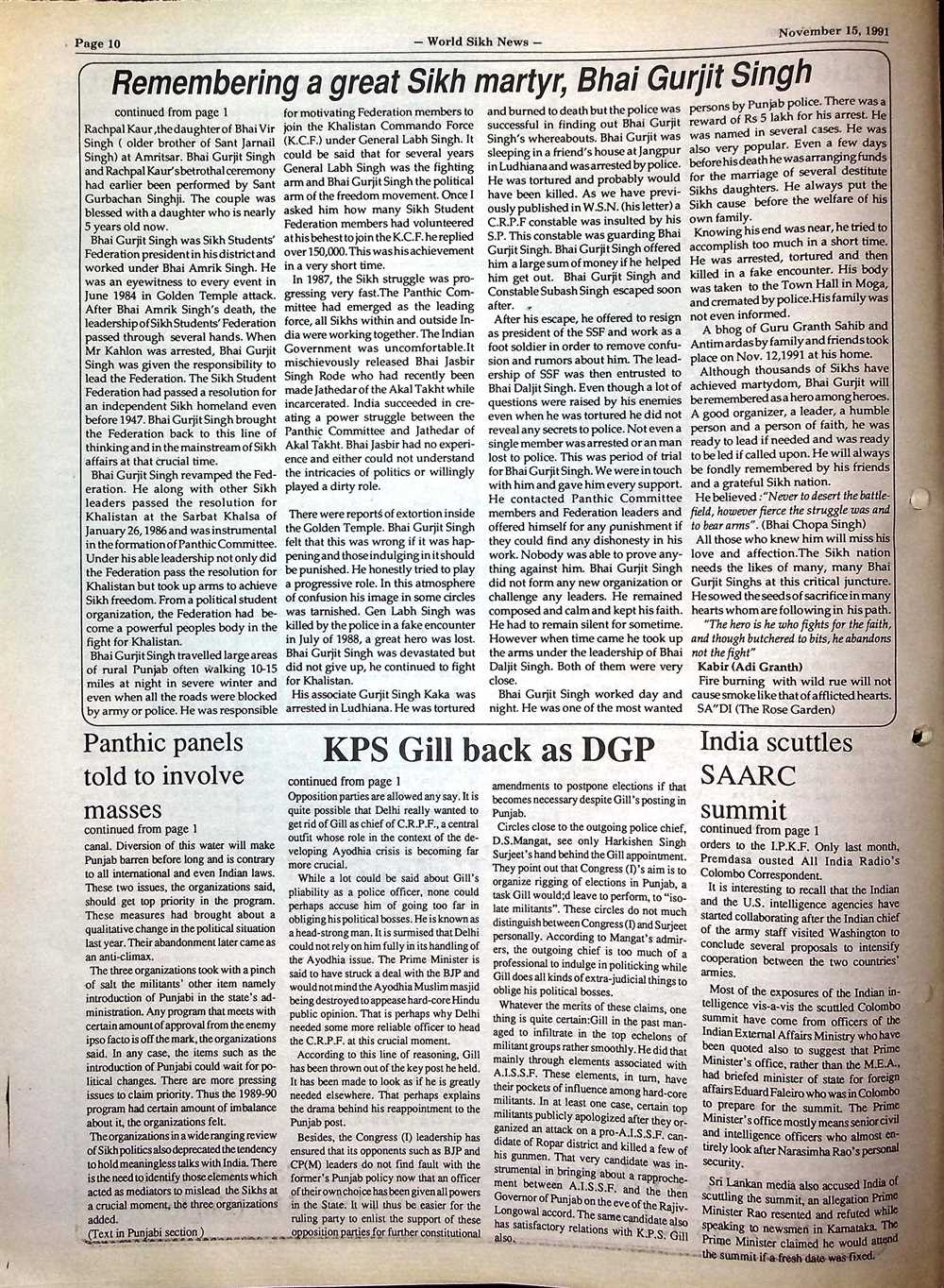 Col.G.B. Singh Articles