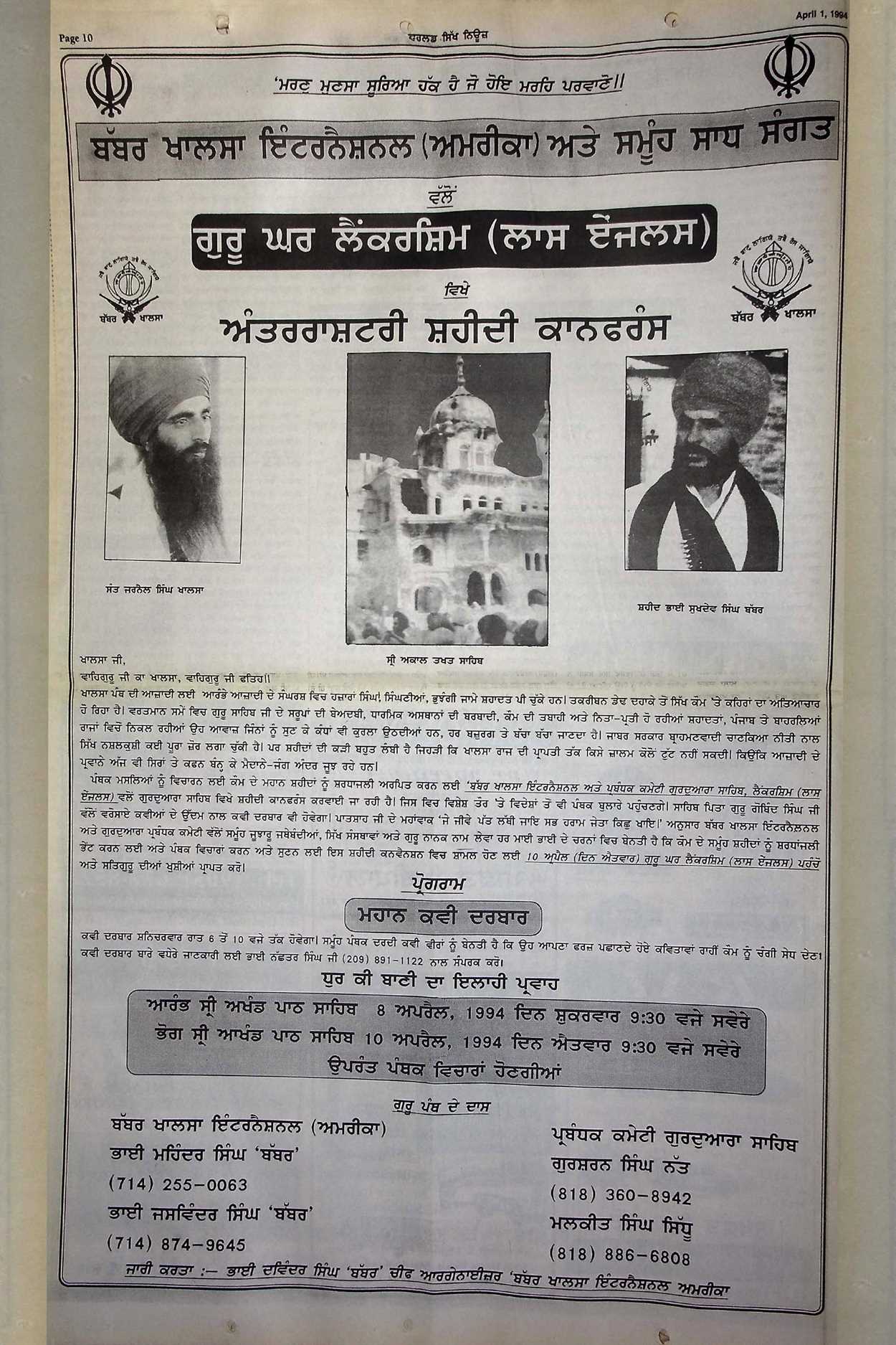 Documentation, study and interpretation of Sikh history as witnessed by our generation, especially the 1984 Sikh Holocaust, for the benefit of future generations.